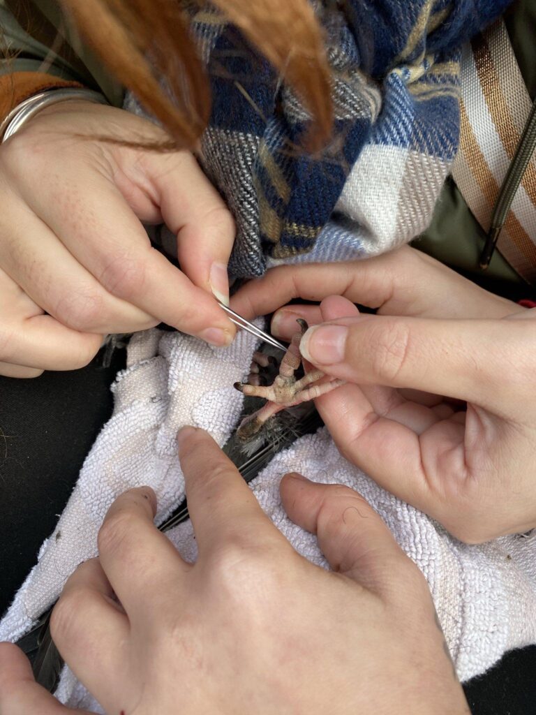 L’activité principale consistait à enlever des cheveux et des ficelles de ses pattes. Pour faire ça il suffit d’avoir du temps, de la patience et quelques outils comme un ciseau fin, une serviette, un spray antiseptique SANS alcool pour nettoyer, si besoin.